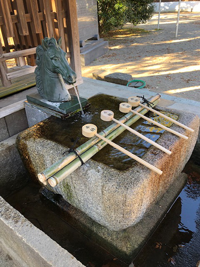ここは馬の神様として信仰されていて、手水舎の吐水口が馬の像になっています。